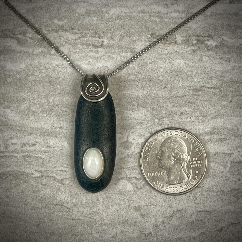 Pendant Materials: Basalt Stone, Silver, Ethiopian Opal